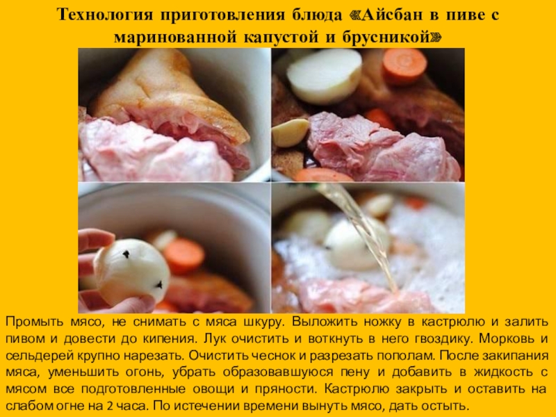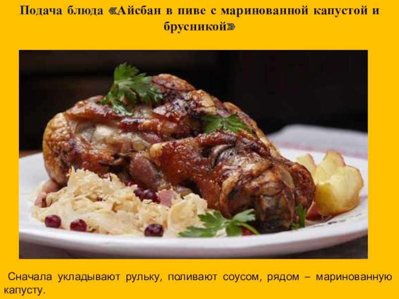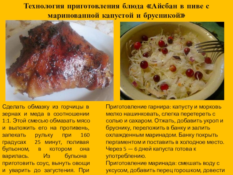 Технология приготовления блюда «Айсбан в пиве с маринованной капустой и брусникой»