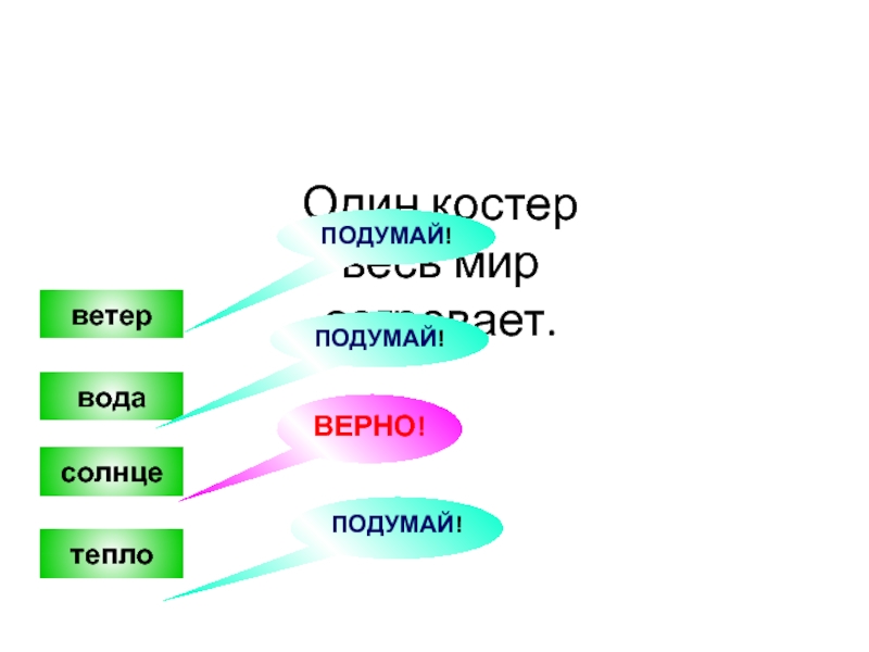 Один костер весь мир согревает.солнцеветерводатеплоПОДУМАЙ!ВЕРНО!ПОДУМАЙ!ПОДУМАЙ!
