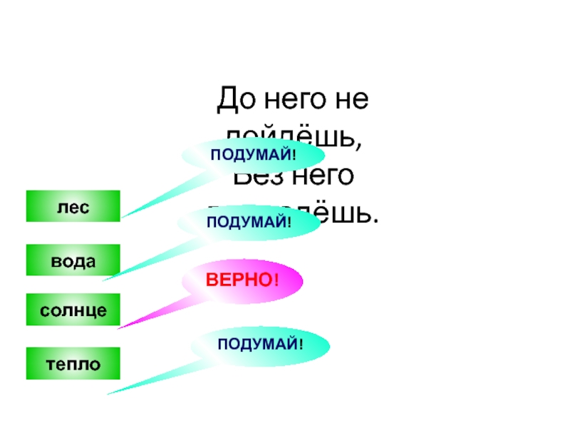 До него не дойдёшь, Без него пропадёшь.солнцелесводатеплоПОДУМАЙ!ВЕРНО!ПОДУМАЙ!ПОДУМАЙ!