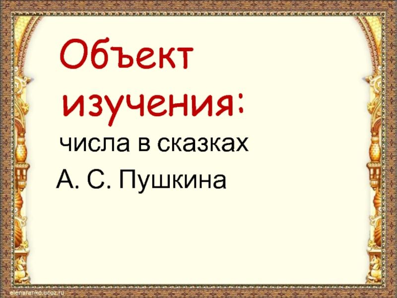 Объект   изучения:  числа в сказках А. С. Пушкина