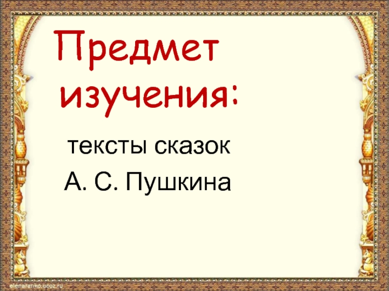 Предмет   изучения:  тексты сказок  А. С. Пушкина