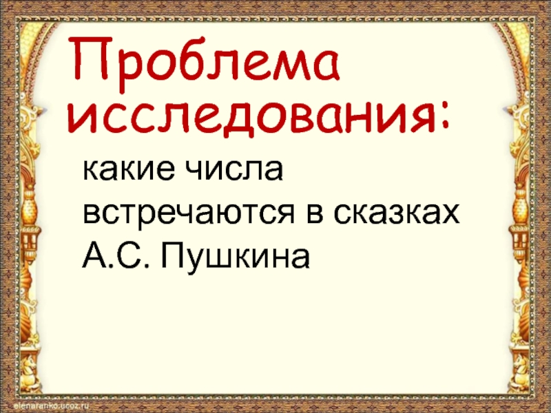 Проблема исследования:  какие числа встречаются в сказках А.С. Пушкина