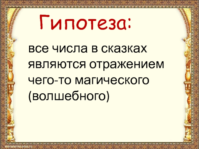 Гипотеза:  все числа в сказках являются отражением чего-то магического (волшебного)