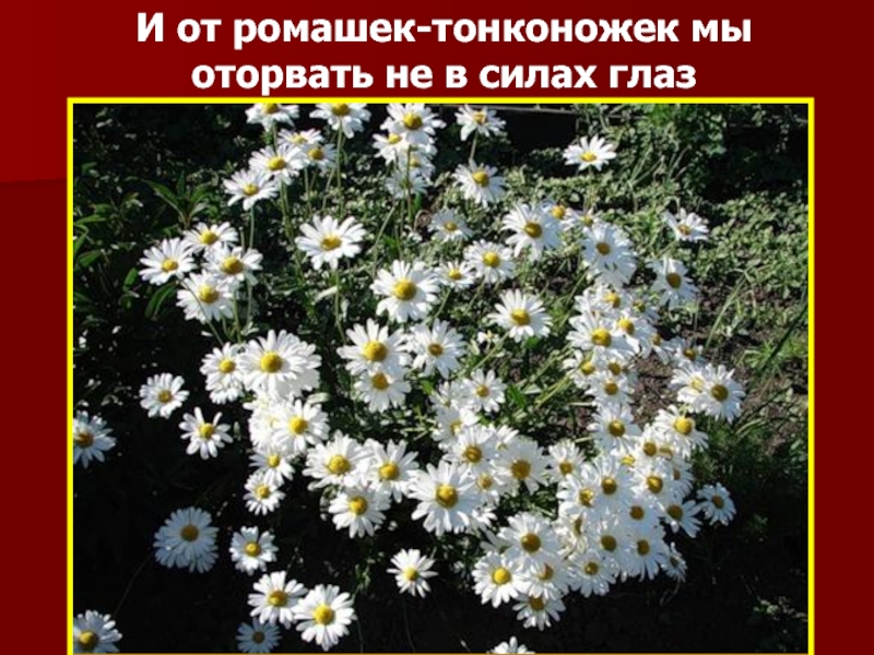 Слайд 4И от ромашек-тонконожек мы оторвать не в силах глаз