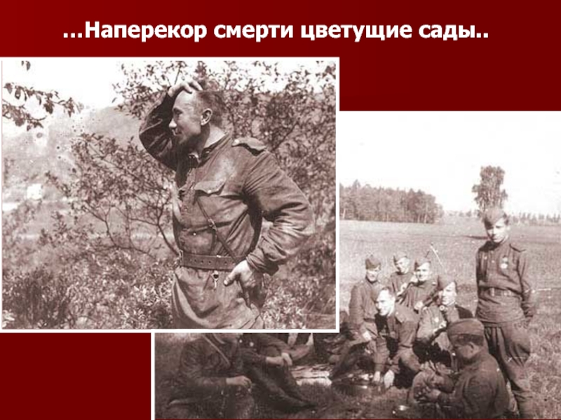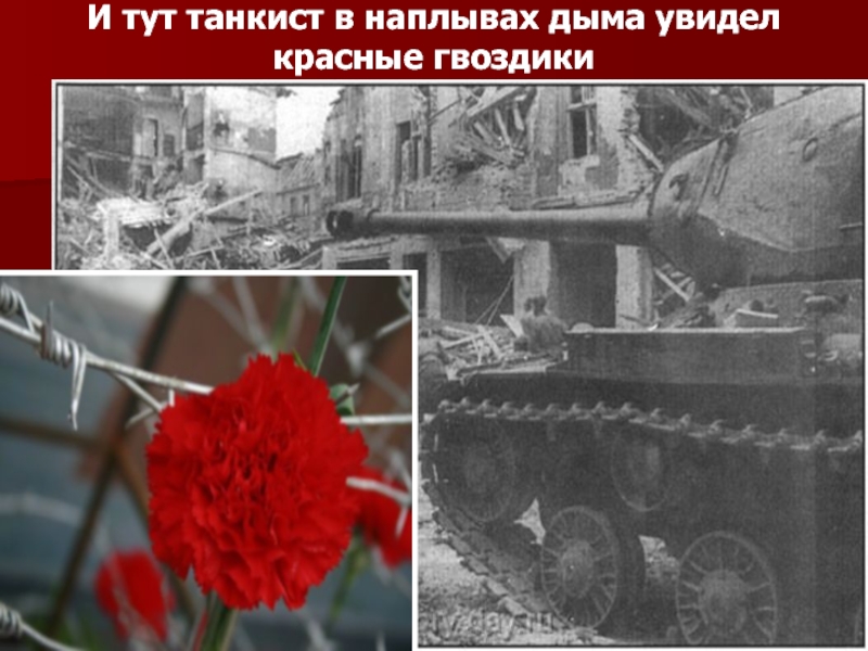 Слайд 11И тут танкист в наплывах дыма увидел красные гвоздики