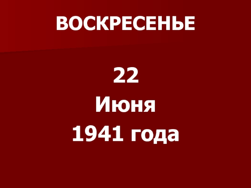 ВОСКРЕСЕНЬЕ 22Июня1941 года