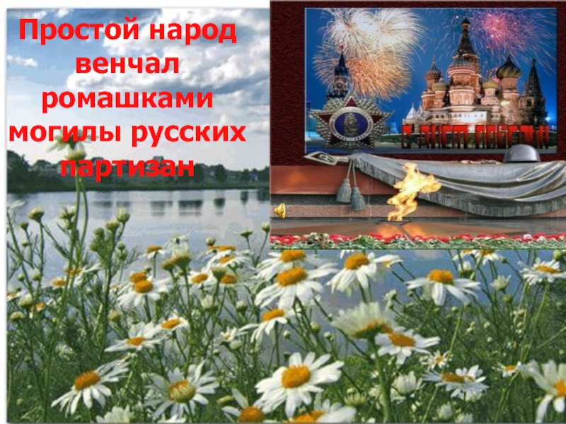 Слайд 15Простой народ венчал ромашками могилы русских партизан