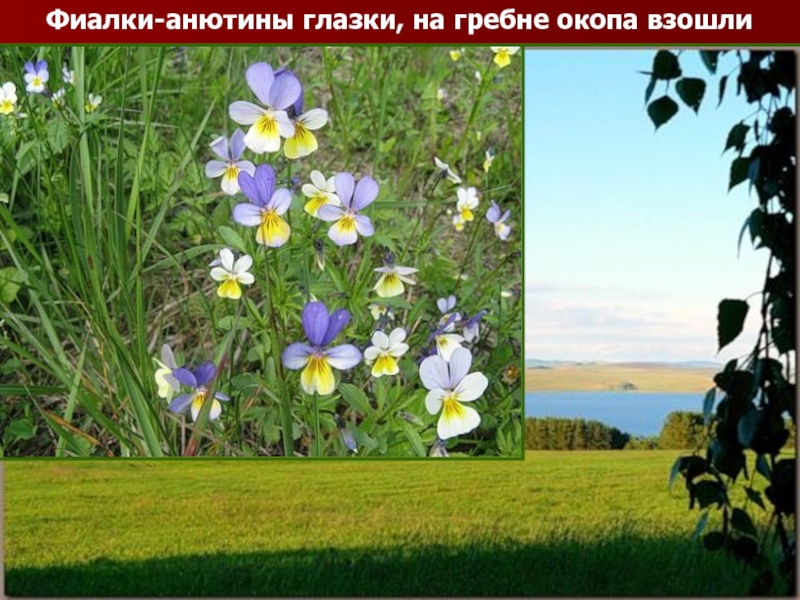 Слайд 10Фиалки-анютины глазки, на гребне окопа взошли