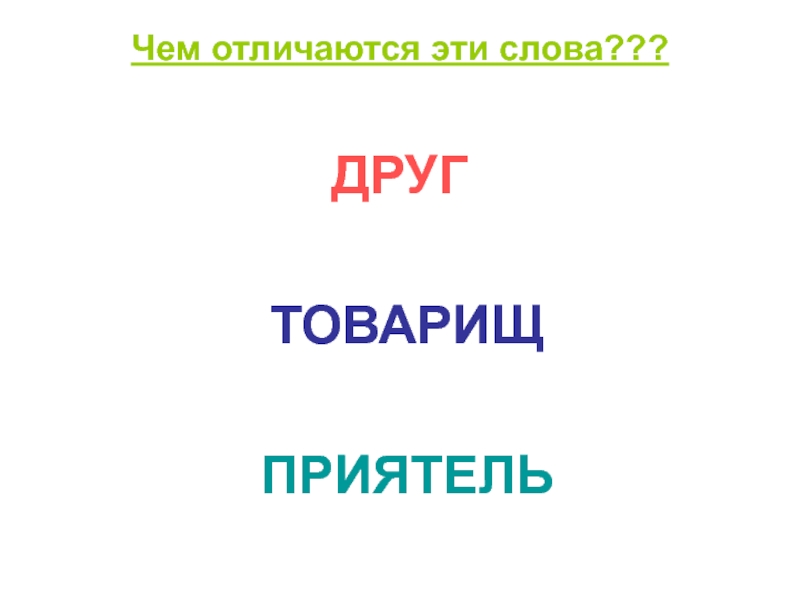 Чем отличаются эти слова???ДРУГ ТОВАРИЩ ПРИЯТЕЛЬ