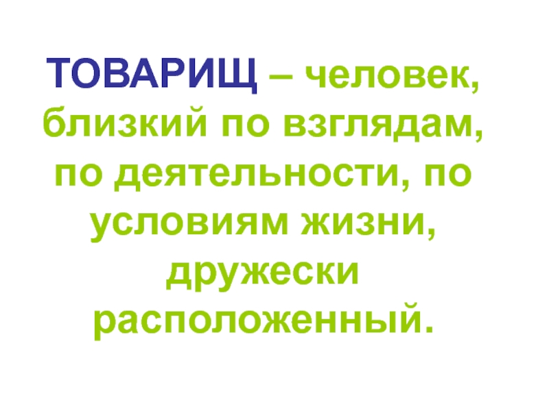 Слайд 9ТОВАРИЩ – человек, близкий по взглядам, по деятельности, по условиям