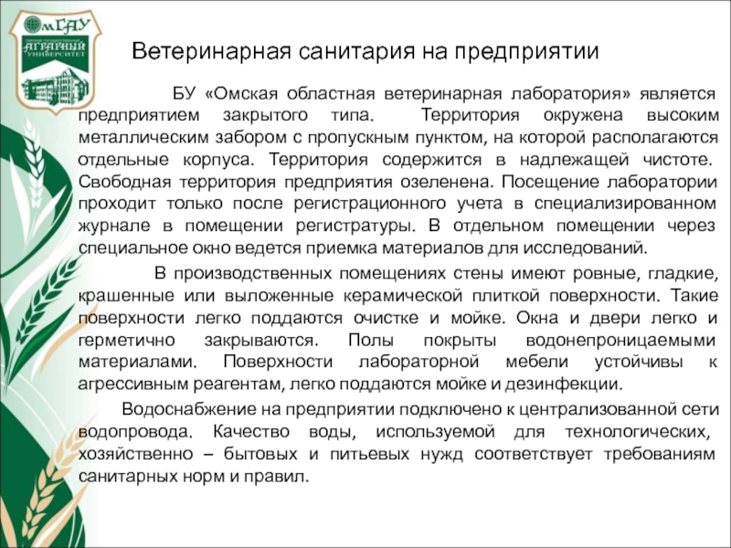 «Омская областная ветеринарная лаборатория» является предприятием закрытого типа. Территория окружена