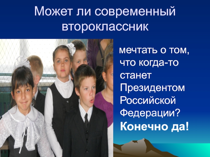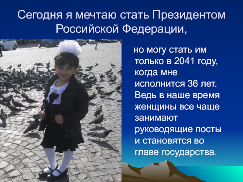 Слайд 17Сегодня я мечтаю стать Президентом Российской Федерации,