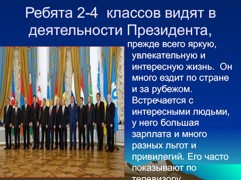 Слайд 26Ребята 2-4 классов видят в деятельности Президента,