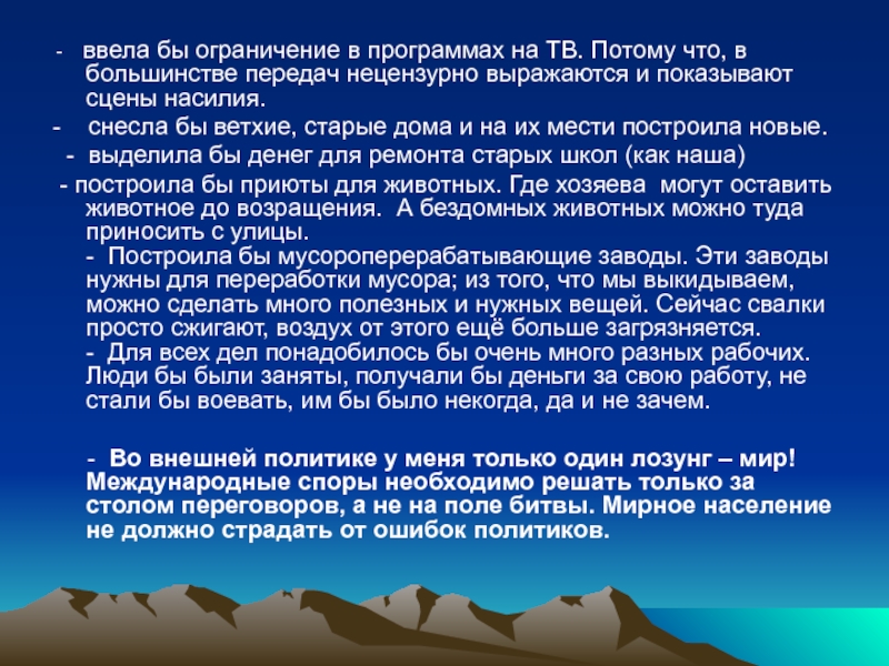 - Если бы была я президентом,
