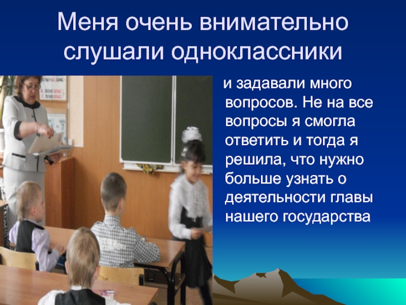 Слайд 6Меня очень внимательно слушали одноклассники
