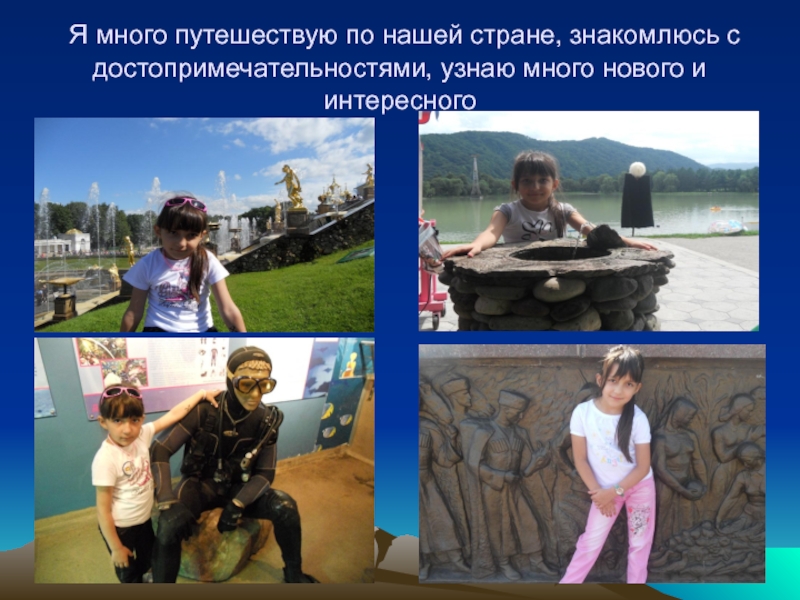 Слайд 20 Я много путешествую по нашей стране, знакомлюсь с достопримечательностями,