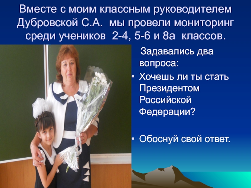 Слайд 23Вместе с моим классным руководителем Дубровской С.А. мы провели мониторинг