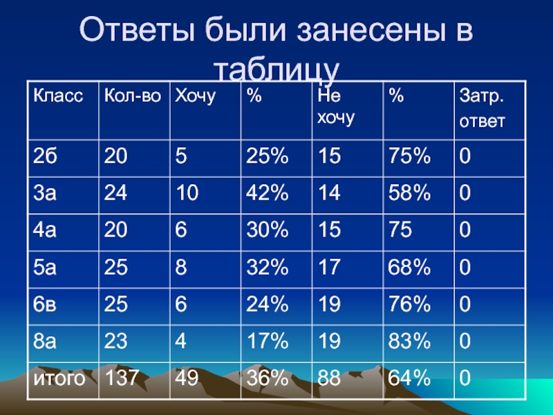 дали положительный ответ. Причем положительная картина наблюдается в 3 и в 5 классах. Во всех классах много ребят которые не хотят занимать этот пост.