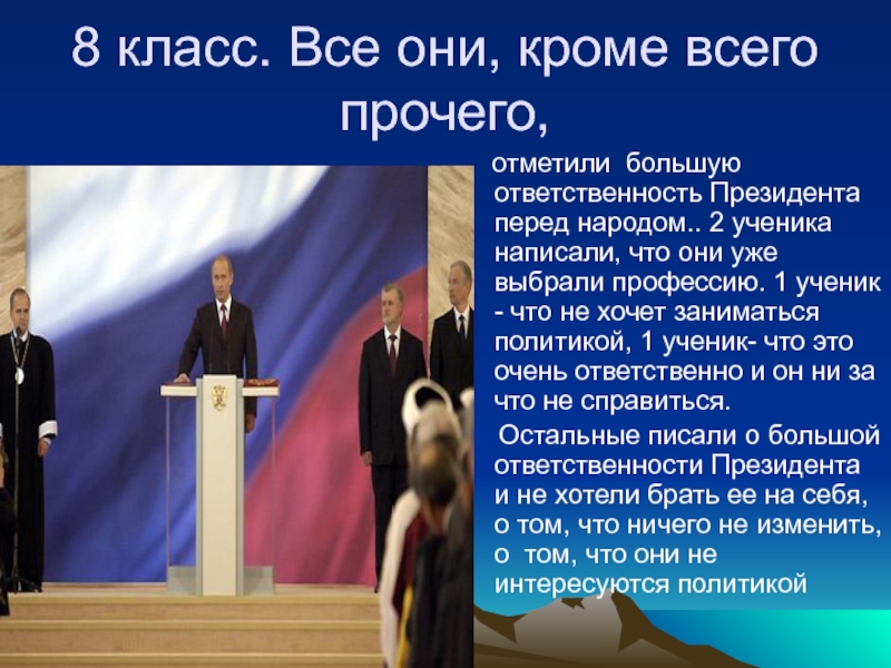 большую ответственность Президента перед народом.. 2 ученика написали, что они