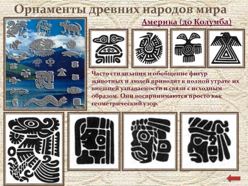 традиционном искусстве народов Африки, в орнаментах южно-американских индейцев. В их