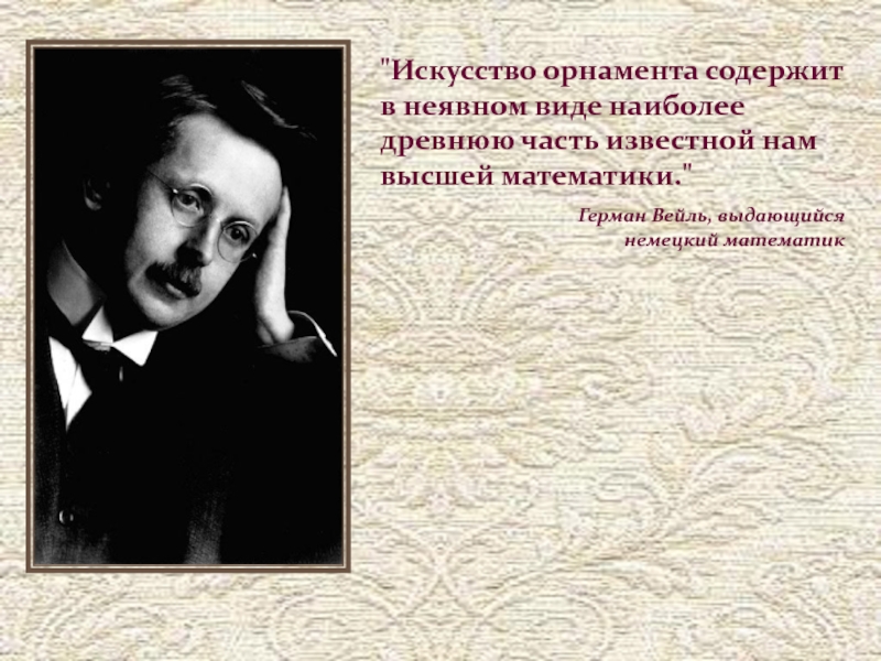 Слайд 2"Искусство орнамента содержит в неявном виде наиболее древнюю часть известной