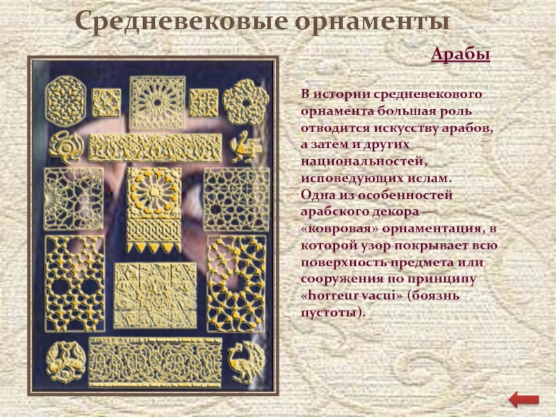 В истории средневекового орнамента большая роль отводится искусству арабов,