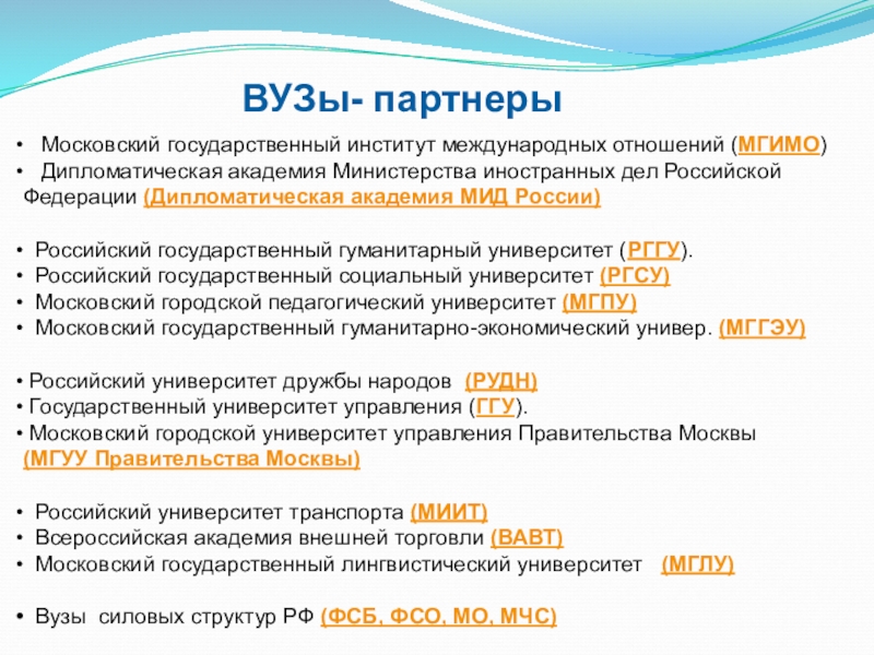 Коммерческие структуры: «Норильский Никель», «Газпром», «Лукойл», «Северсталь», ВГТРК и др.