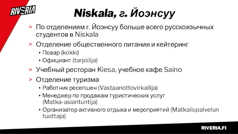 Объединение образования Северной Карелии =Профессиональный колледж Riveria