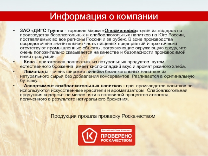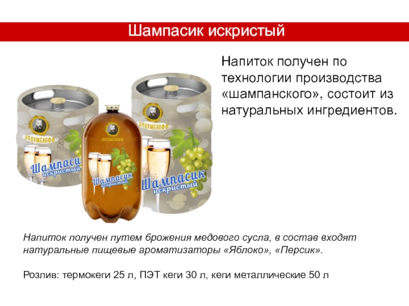 Напиток получен по технологии производства «шампанского», состоит из натуральных ингредиентов.