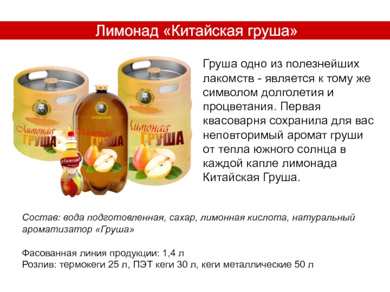 Состав: вода подготовленная, сахар, лимонная кислота, натуральный ароматизатор «Груша»
