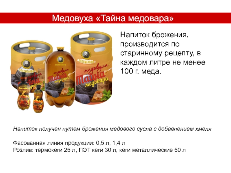 Фасованная линия продукции: 0,5 л, 1,4 л, 2 л