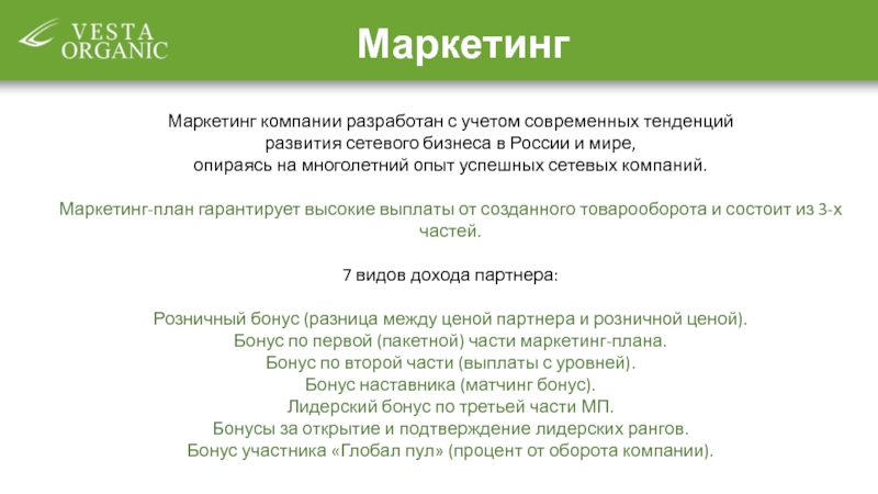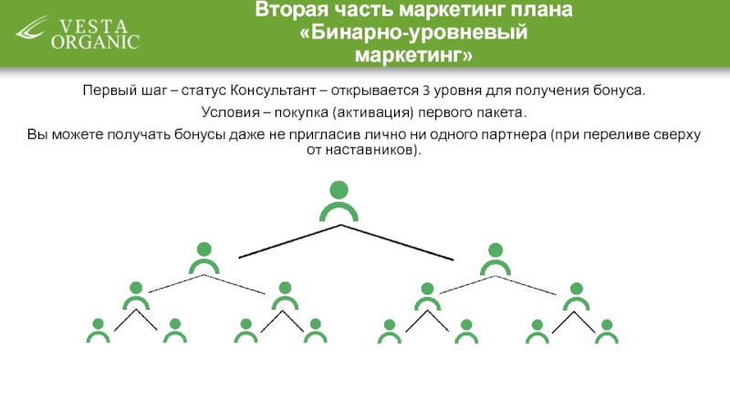 гарантирует высокие выплаты от созданного товарооборота и состоит из 3-х частей.