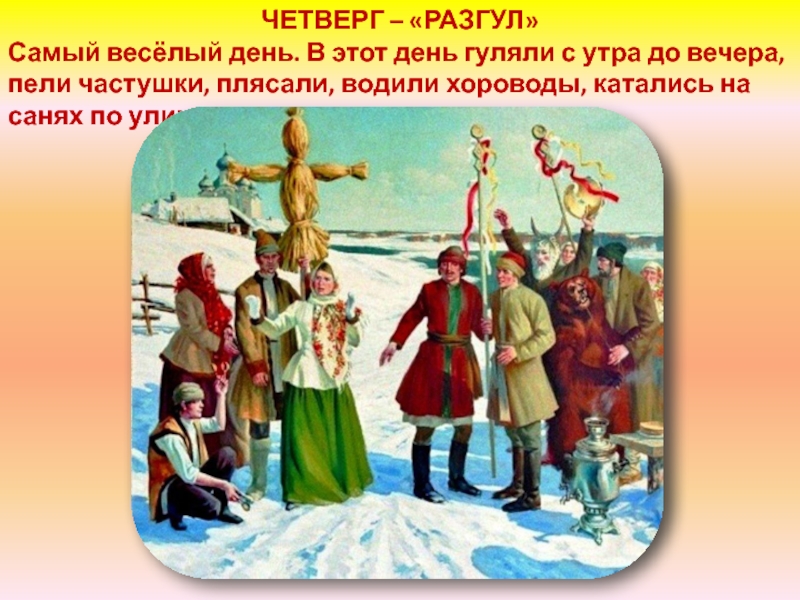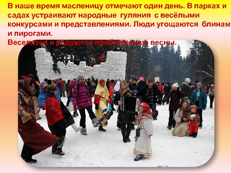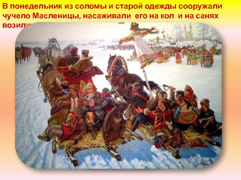 забавы, катания на санях, пекли и ели блины. Каждый день масленицы