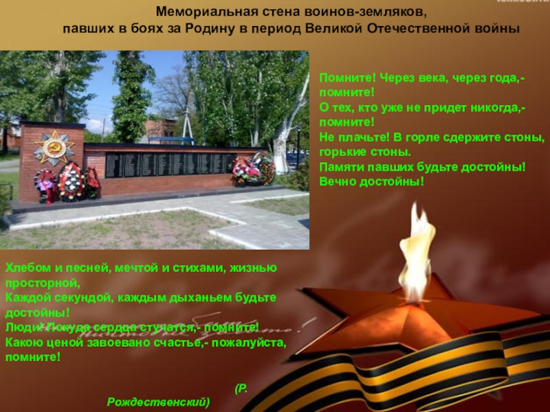 Какою ценой завоевано счастье,- пожалуйста, помните!