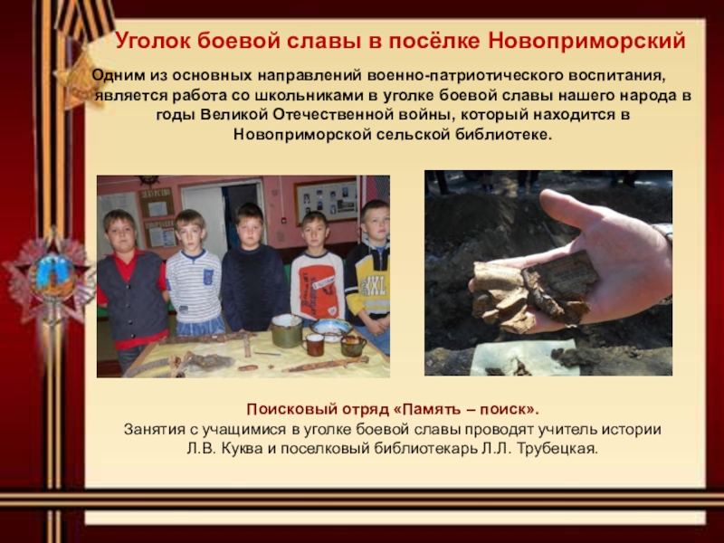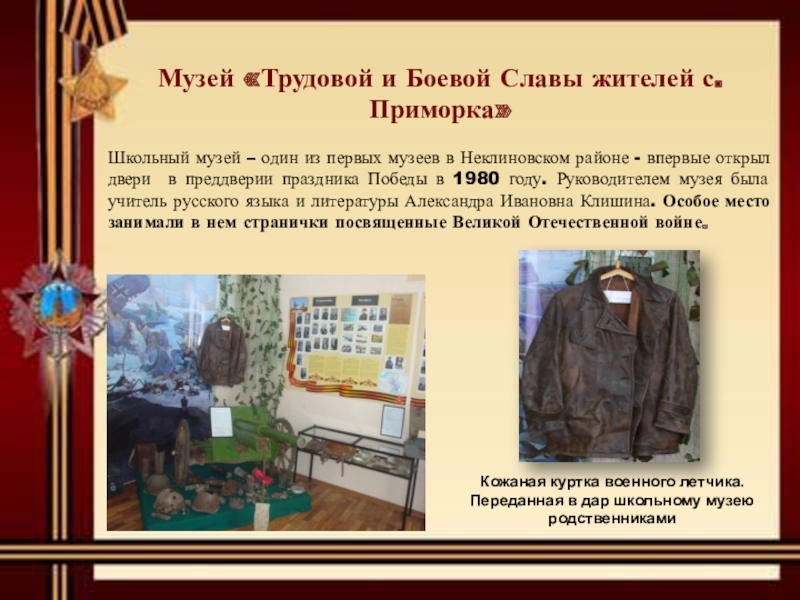 Уголок боевой славы в посёлке Новоприморский