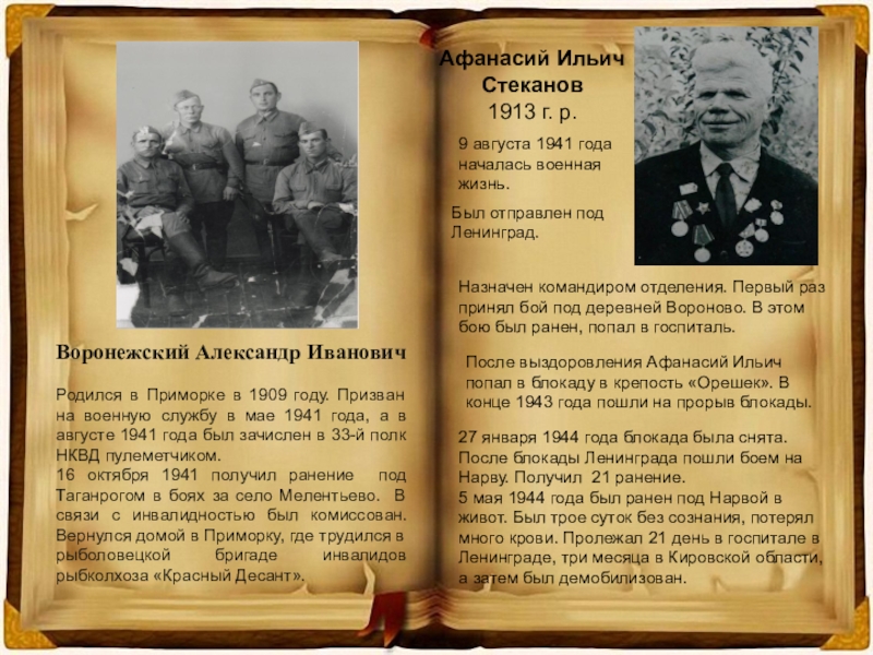 После выздоровления Афанасий Ильич попал в блокаду в крепость «Орешек». В конце 1943 года пошли на прорыв блокады.