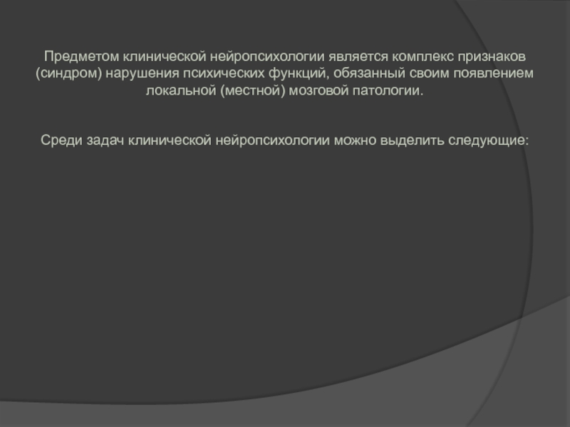 Специалисты по клинической нейропсихологии имеют своим объектом людей с ограничениями в функционировании нервной системы, в частности, в функционировании большого мозга.