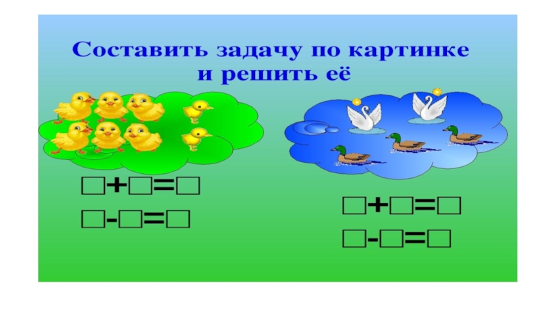 Цели: формирование начальных математических знаний Задачи: продолжать учить составлять и решать задачи на сложение и вычитание в