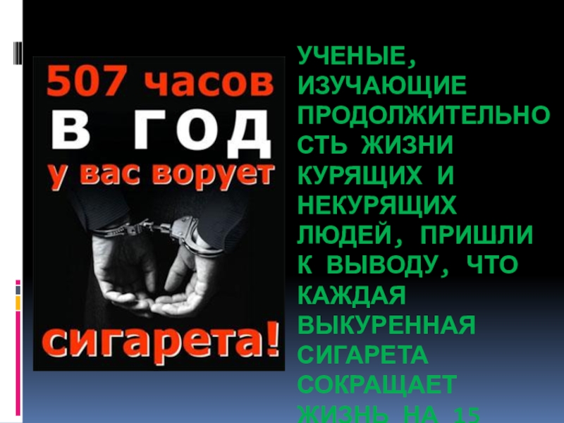 выводу, что каждая выкуренная сигарета сокращает жизнь на 15 минут.