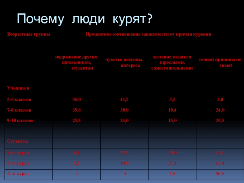 Курение начинается: - «с баловства»,  - «из желания подражать», - «так модно», - «за компанию», -