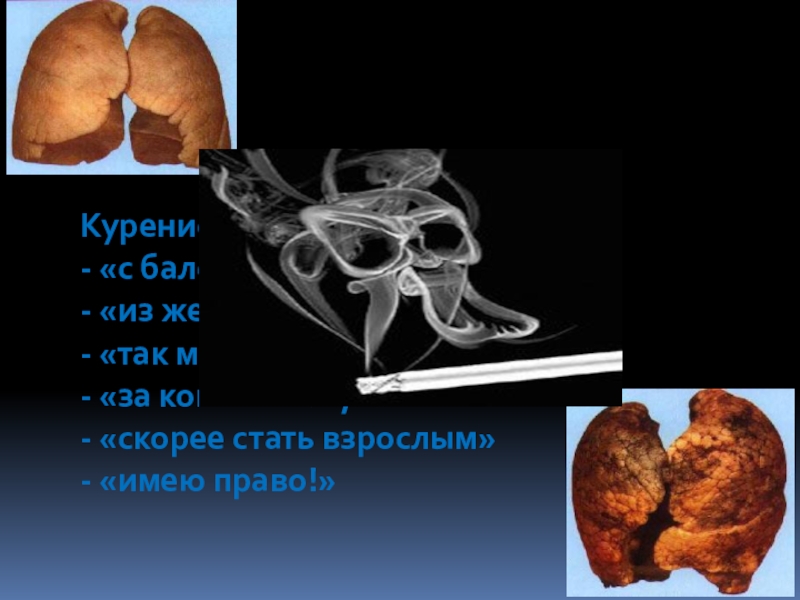 Слайд 4Курение начинается: - «с баловства», - «из желания подражать», - «так модно», -
