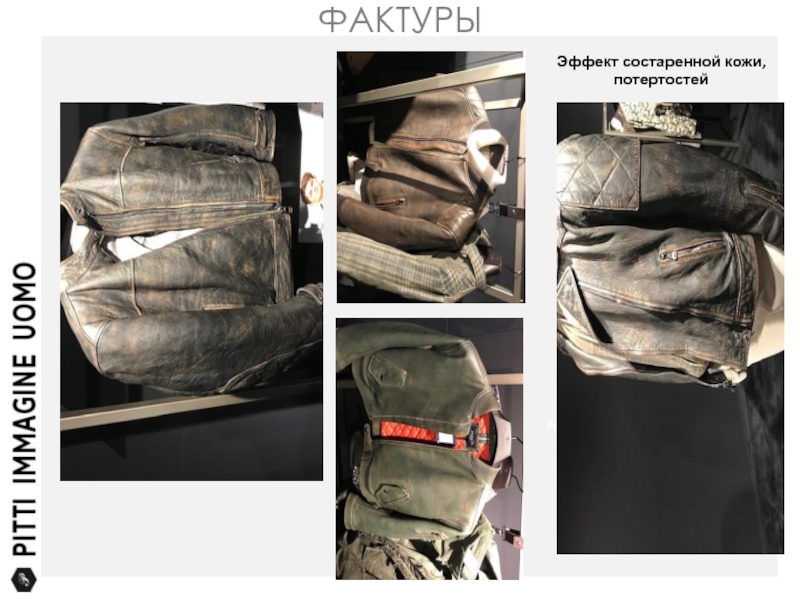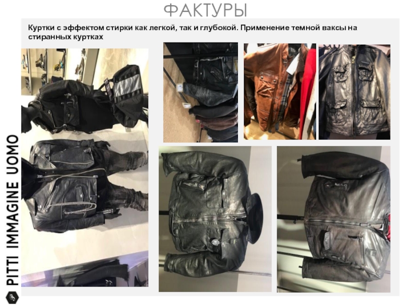 ФАКТУРЫКуртки с эффектом стирки как легкой, так и глубокой. Применение темной ваксы на стиранных куртках