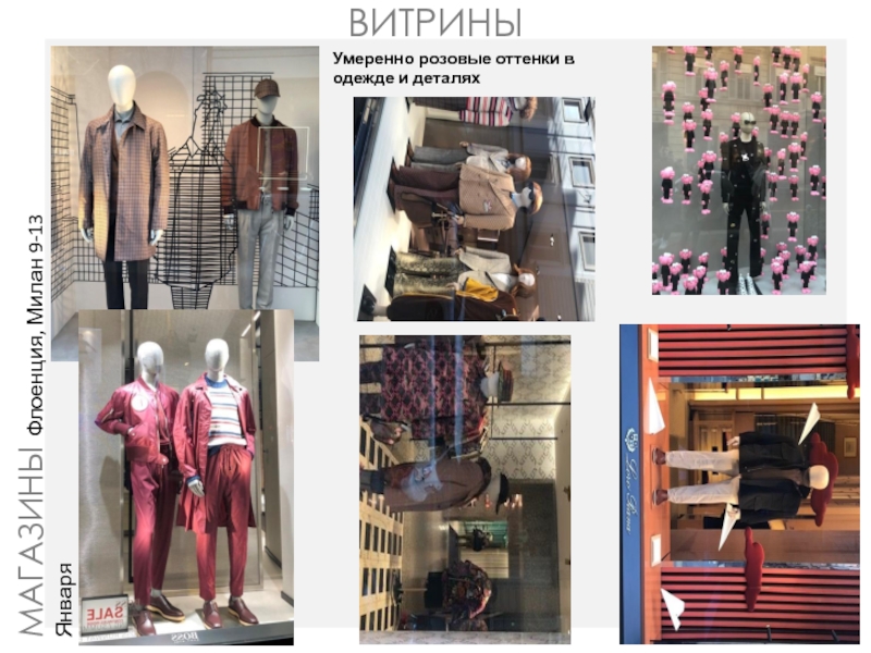 ВИТРИНЫМАГАЗИНЫ Флоенция, Милан 9-13 ЯнваряУмеренно розовые оттенки в одежде и деталях