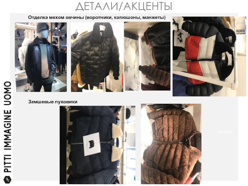 ДЕТАЛИ/АКЦЕНТЫPeutereyPeutereyОтделка мехом овчины (воротники, капюшоны, манжеты)Замшевые пуховики