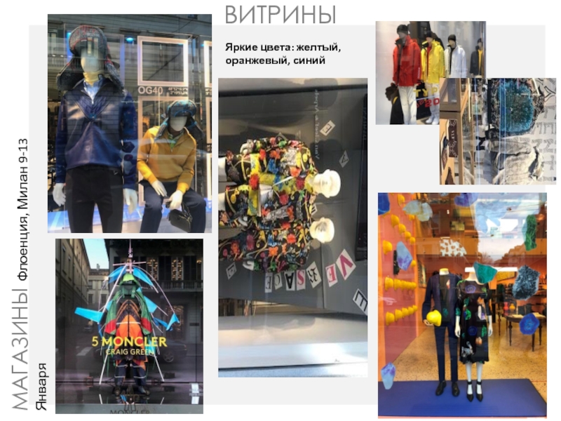 ВИТРИНЫМАГАЗИНЫ Флоенция, Милан 9-13 ЯнваряЯркие цвета: желтый, оранжевый, синий