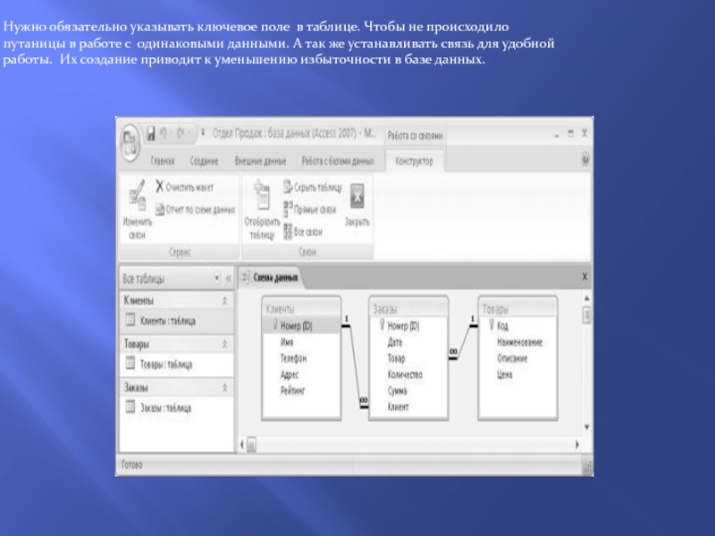 Слайд 5Нужно обязательно указывать ключевое поле в таблице. Чтобы не происходило