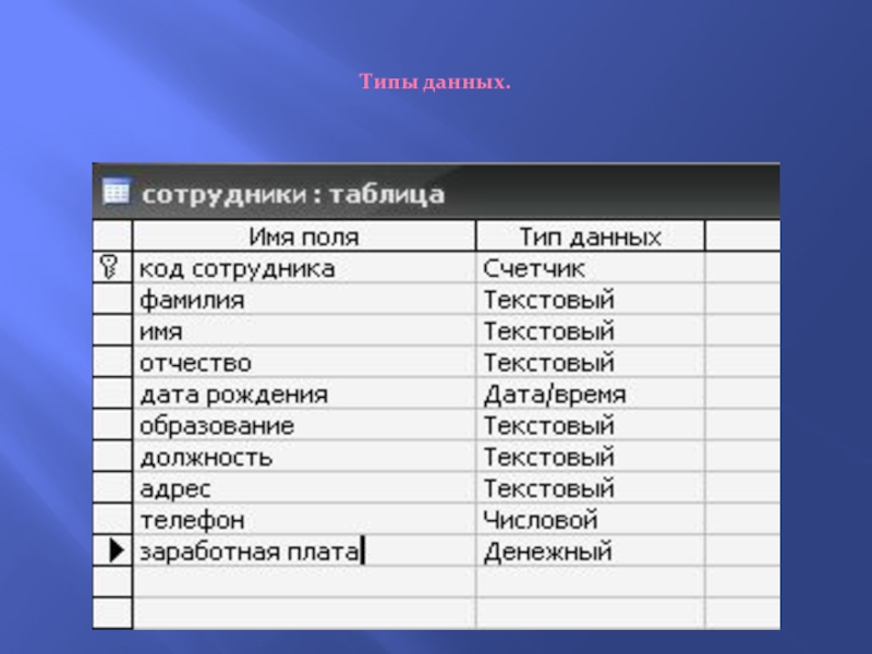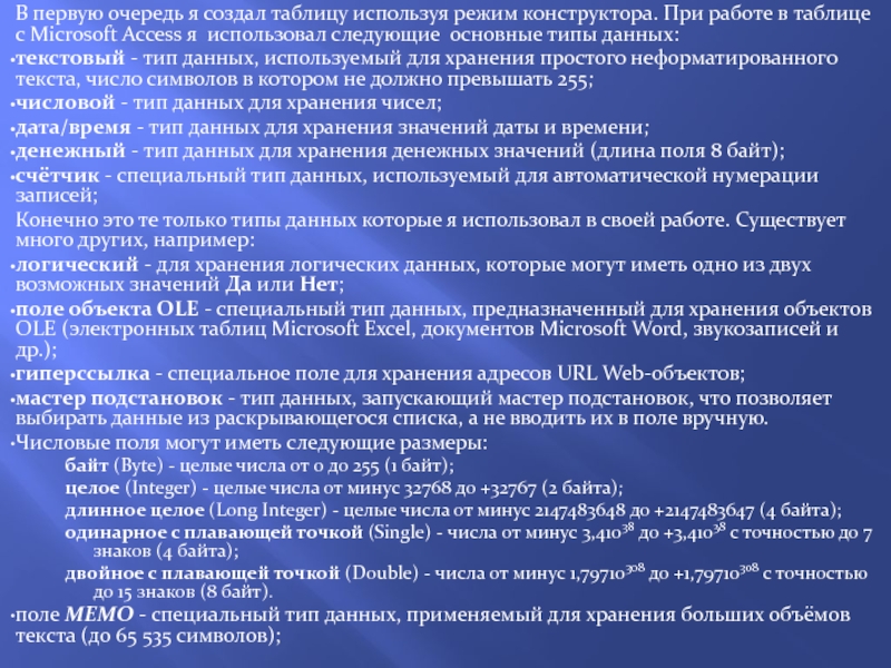 Слайд 3В первую очередь я создал таблицу используя режим конструктора. При