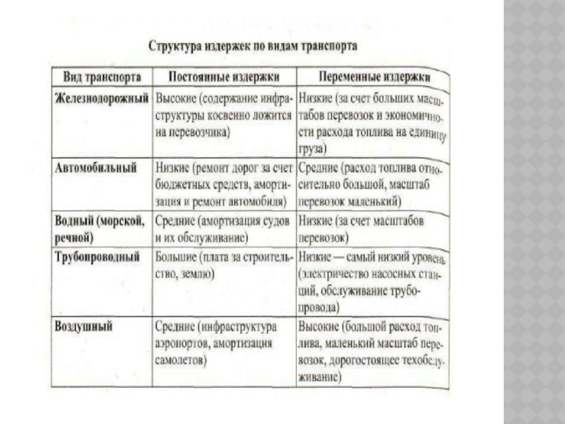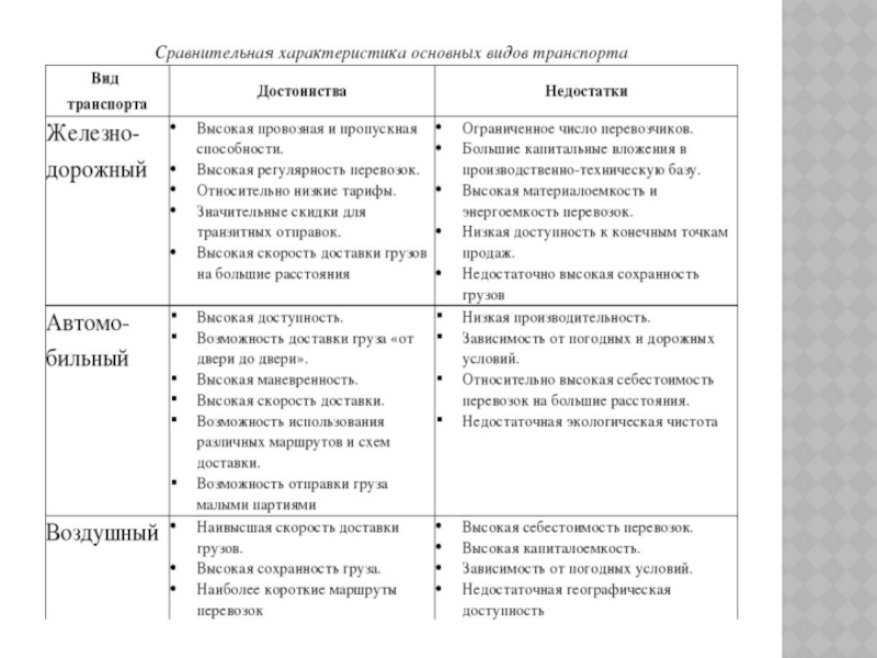 грузы, способность доставить груз в любую точку территории, стоимость перевозки.