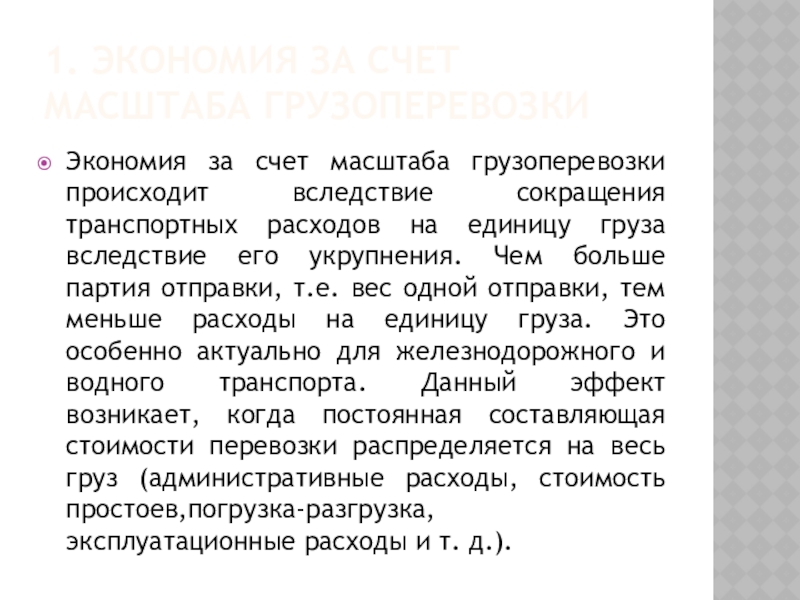Слайд 131. Экономия за счет масштаба грузоперевозки