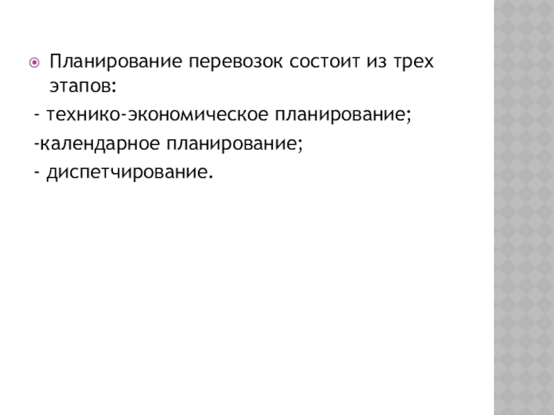 Слайд 6Планирование перевозок состоит из трех этапов: